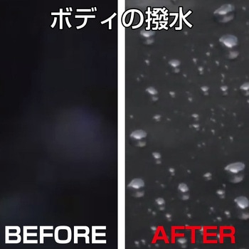 施工してすぐ撥水ボディ!大きな水玉が特徴!ほこりなどの汚れを除去して、ボディ表面を強力保護!撥水効果で雨天時に大きな水玉をつくり、汚れを流し、ウォータースポットをつきにくくします。