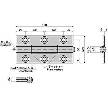ステンレス ドア用ヒンジ(L150×W72×t4)