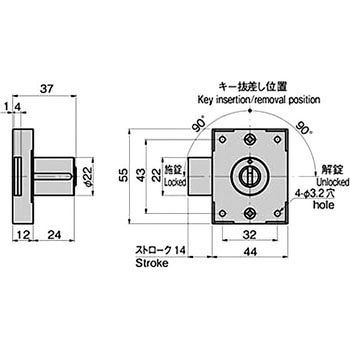 シリンダー錠部/快削黄銅棒(C3602BD)、ケース・カバー/ステンレス鋼板(SUS304)
