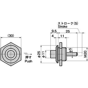 矢印方向へボタンを押すと5.5mm作動します。