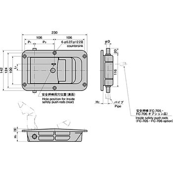 パイプは扉内部に埋込まれる為、扉の外観を損なわずバンボディーのイメージを一新します。ハンドルロック部はスナッチロック方式を採用し、ワンタッチで開閉できます。ハンドルが確実にロックしていないと朱色のインジケーターが突起します。閉扉操作が目視で確認でき安全です。