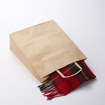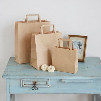 一般的な廉価な紙袋です。手紐は平紐になります。