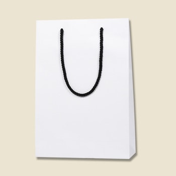 落ち着いた風合いの質感が人気のマットPP貼りを施したブライトバッグです。手紐(パイレン紐)は「ポリエステル」及び「PP」紐と比較すると張り・光沢があるのが特徴で、袋全体の印象を高める効果があります。口ボール・底ボール付