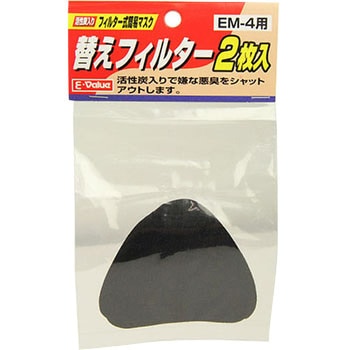 活性炭作用で嫌なにおいをシャットアウトします。フィルター式簡易マスクEM-4に適合する交換用フィルターです。活性炭入りのフィルターです。