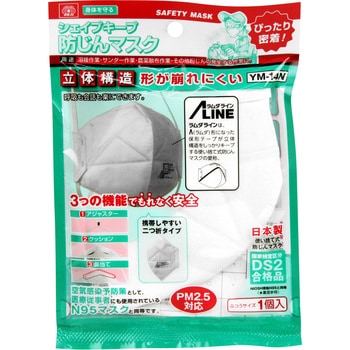 特殊加工の立体構造で、ぴったり密着、呼吸も会話も楽にできます。空気感染予防策として、医療従事者にも使用されているN95マスクと同等です。携帯しやすい二つ折タイプです。しめひもの長さが調節できるアジャスター付です。内側の鼻当てクッションによってマスクと鼻部のすき間をなくすことができます。鼻当ては、鼻の形に合わせることができます。