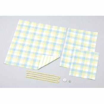 ダブルガーゼ:250×270、ダブルガーゼ:150×230、ダブルガーゼ:150×120、マスクゴム:300、ボタン4つ穴:Φ15、スナップボタン:Φ15