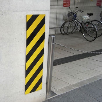 円柱、角柱、壁面など凹凸なところにも手軽に貼れる粘着タイプのジャバラタイプ簡易クッション材。