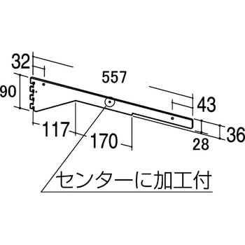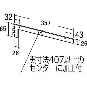 スリット穴掛け式棚等設置システムの汎用腕金具(Aタイプ、Bタイプ対応セフティホルダー、および24Rホルダー装着用4.5Φ加工穴付き)