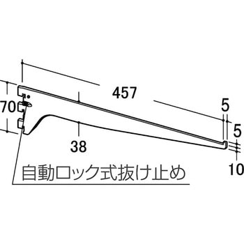 スリット穴掛け式棚等設置システムの、ガラス棚専用腕金具(先端前ズレ防止構造付き)