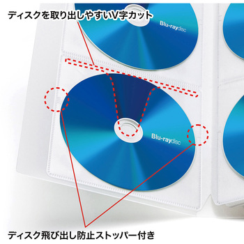 不織布にはディスクを出し入れしやすい切れ込みと、飛び出しを防ぐサイドストッパーが付いています。