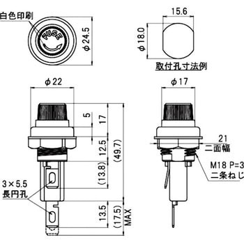 定格電圧300V-25A適合FG-20、FG-30、その他種類ヒューズホルダ定格電圧(V)300定格電流(A)25材質(絶縁体)フェノール(UL94V-0)絶縁抵抗(MΩ)DC500V、100以上取得規格UL規格・C-UL規格端子金具差込端子(タイプ250,t0.8)兼用はんだ付端子取付板厚(mm)3(MAX)ナット二面幅(mm)21色(本体)黒適合ヒューズ管サイズ(mm)Φ6.4×30、Φ6.35×30ナット締付トルク(N・m)1.4以下RoHS指令(10物質対応)対応材質(つまみ)P.B.T.(UL94V-0)耐電圧(V/min)AC2000耐電圧(V)AC2000 (1分間)内容量1個