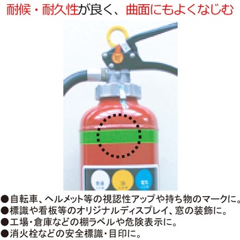 明るい場所でもはっきりと存在を認識できます。日光や照明により、鮮やかな発光でよく目立ちます。貼りつけが簡単で、曲面にもよくなじみます。