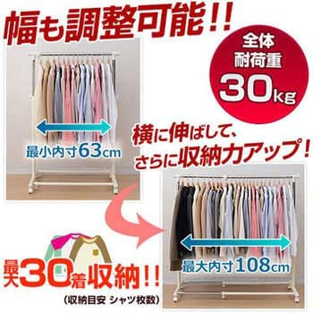 縦も横も自由自在にサイズ変更できるハンガーラックです。最大30着収納でき、キャスター付ですので移動も楽にできます。