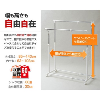 幅伸縮ハンガーラック ダブル キャスター付き