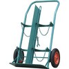 酸素7000L容器、アセチレン7.0kg容器を運搬するのに最適です。上下二段のチェーンにより、安全にボンベを運搬することができます。車輪がノーパンクタイヤのため、悪路などでも楽に運搬することができます。