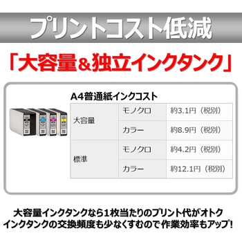 インクコストと交換頻度を低減。大容量インクタンクをご用意。気になるインクコストを低減します。
