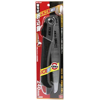 用途に合わせて、刃の角度を2段階に切り替えできます。22枚目(3cmあたり)の細かい刃で内装造作や合板、竹などをきれいに切断します(従来木工用11枚目)。アサリなしの刃なので大変美しい切り口です。Uカットの前後には縦目が入っており、コンパネの切断や、木材の縦・横・斜め挽きなどにも切れ味を発揮します。刃先は衝撃焼入れで対磨耗性がが高く、切れ味が持続します。