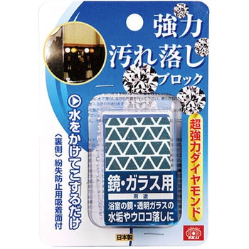 業務用としても使われているダイヤモンド砥粒を使用しているので、水をかけてこするだけです。浴室の鏡・透明ガラスの水垢やウロコ落としに最適です。裏面には吸着シートを取り付けていますので、平面部分に付着させることが可能です。吸着力が落ちてきたら、シート表面を水洗いし、汚れを落とすことで、吸着力が戻ります。