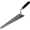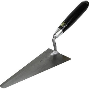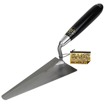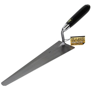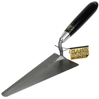 作業効率を重視し、ブロック積みに最適な形状を有する職人仕様の専用鏝です。ブロック積み専用鏝です。ブロックを積む際のモルタルのすくい、押さえ、はみ出したモルタルの掻き出し作業に適した形状です。実際のブロック積作業時にはほとんど使われない鏝板の右側の面積を狭くすることで軽量化になり作業効率が良くなります。