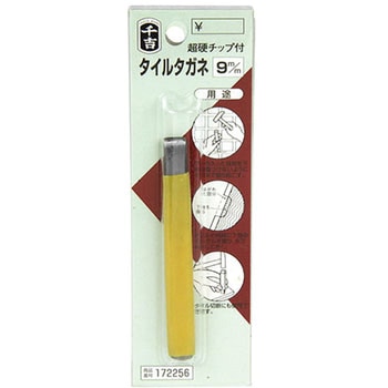 刃先超硬チップ付のタイルタガネです。刃幅9mmのタイルタガネです。