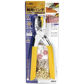 ハトメつけ、スナップつけに最適です。1丁でスナップボタンとハトメが使用出来ます。ハトメを取り付けることにより、いつまでも丈夫に品物を長持ちさせるのに大変役立ちます。