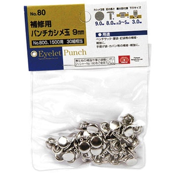革製品補修用パンチNo.800、特大カシメパンチNo.1500用のカシメ玉です。SK11革製品補修用パンチ(No.800)、SK11特大カシメパンチ(No.1500)に使用可能です。薄生地の補強や厚さ調整にはポリワッシャー(No.180)をご使用ください。