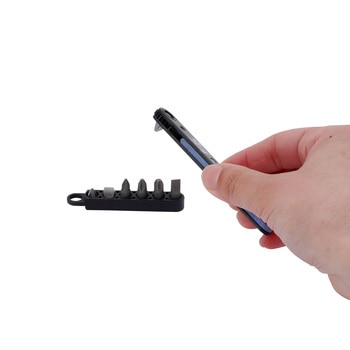 クラス最薄の13mmヘッドで、さらに狭い場所での作業に適しています(12mmビット装着時)。ストレートタイプで狭い場所でも作業がしやすいです。市販の六角対辺6.35mmビットが使用できます。交換するビットの先端で押し出し、抜き取ります。