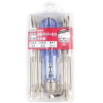 低圧用検電ドライバーセットです。検電の際、ドライバーの柄部末端にあるネジを親指で押さえ刃先をプラス側に接触させれば、柄の内部のネオン管が発光し、電気の導通の有無・異常がわかります。オフセットドライバー付きです。ドライバーとしてもご使用いただけます。
