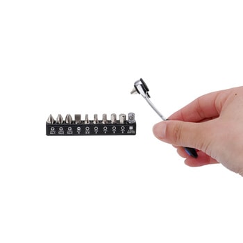 高性能ギア搭載で、本締め可能なハイパワーラチェットドライバーです。クラス最小ヘッド幅14.3mmのコンパクトヘッドです。市販の六角対辺6.35mmビットが使用できます。