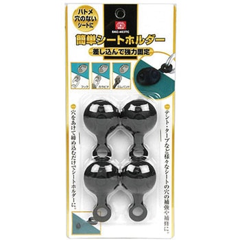 テントやタープ、日よけシートなどを様々なシート穴の補強や補修に最適です。シートに穴をあけて締め込むだけです。先端はキリ形状のため、シートの材質によっては、直接差し込むことも可能です。ハトメ穴のないシートをハトメ代わりとして強力に固定します。