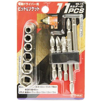 電動ドライバー用のビット・ソケットセットです。ビットホルダー・ソケットホルダー付きです。ネジ・ビスの締め付けができるビットと、ボルト・ナットの締め付けができるソケットの便利なセットです。