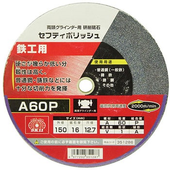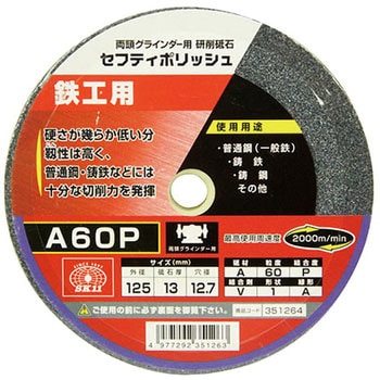 両頭グラインダー用の研削砥石です。硬さが幾らか低い分靭性は高く、普通鋼・鋳鉄などには十分な切削力を発揮します。