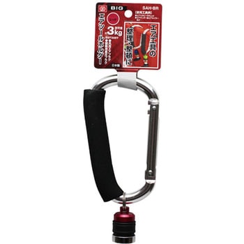 用途エア工具の整理整頓。材質カラビナ:アルミニウム合金・他材質(本体)鉄・アルミニウム合金・真ちゅう・他質量(g)140耐荷重(kg)3継手接続可能:常圧汎用プラグ・建築用高圧プラグ内容量1個