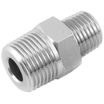エアー配管用中間異径ニップルです。異径のホース・管及び機器を同方向に接続します。
