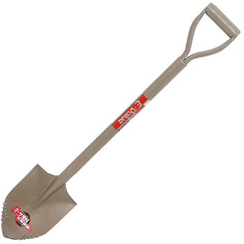 穴掘り・土すくい楽々、ギザ刃付きで根切り作業もできます。ギザ刃部分で根切り作業もできます。刃先研磨で、土への喰い込みが抜群です。