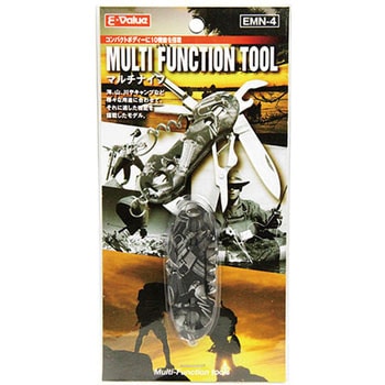 手のひらサイズのボディーに10機能を搭載したマルチナイフです。タフに使えるサビに強いステンレス製です。海、山、川やキャンプなど様々な用途に合わせて、それに適した機能を搭載したモデルです。機能は缶切り・ナイフ・はさみ・爪そうじ・ヤスリ・マイナスドライバー・プラスドライバー・栓抜き・コルク抜き・キーリングです。