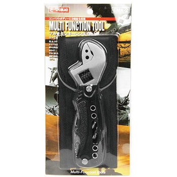 手のひらサイズのボディーに9機能を搭載したマルチモンキーレンチです。タフに使えるサビに強いステンレス製です。海、山、川やキャンプなど様々な用途に合わせて、それに適した機能を搭載したモデルです。機能はモンキレンチ・ナイフ・波刃ナイフ・ヤスリ・ビット(マイナスドライバー・プラスドライバー+1・プラスドライバー+2)・栓抜き・マイナスドライバーです。収納、持ち運びに便利な収納ケース付きです。
