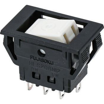 徹底したVA、省銀設計により経済的価格を実現したスイッチです。接触部はシーソー形スライド機構(特許取得済)の採用により接触の安定性、高信頼性が得られ、しかも1mA~12Aまでの幅広い電流容量でご使用になれます。また、ボックス材質に自己消火性UL94V一0フェノール樹脂を使用し絶縁性、耐サ一ジ性にも優れています。全品種(HLS308Aを除く)ULおよびCSA認定品であり、高信頼度スイッチです。