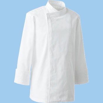 安心・安定の頼れる逸品。火に強く、吸汗性にもすぐれた綿100%のコックコートです。熱などから身体を守るダブルの打ち合わせや着脱が容易で破損の少ないボタンなど調理に必要なさまざまな工夫が盛り込まれた現場で頼りになるアイテム。オール比翼仕立てのコックコート。背中のタックや袖下のマチが機能的です。スリット入りの袖口は、伸ばした状態で長袖丈になります。