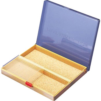 ロック式のフタが付いたプレパラートボックスで、省スペースでの保管を考慮し積み重ねができるようになっています。