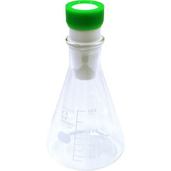 色は、内容物の識別に便利な、緑、青、白の3色展開。サイズも試験管やフラスコ用など、幅広く展開をしています。