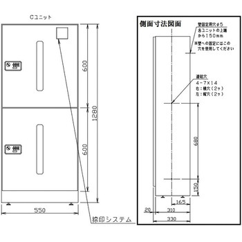 付属品ねじ(背面固定用のみ)1ユニットにSUSノープラグビス呼び4×25(1本)材質スチール(SGCC)粉体塗装ブルーブラック質量(kg)60ボックス組合わせM/M外寸法(mm)1280×550×330錠前4桁プッシュゼロリターン式ダイヤル錠内容量1台