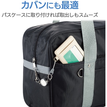 使いたいときだけすっと伸びる!ベルトループやカバンなどに装着可能なフックがついた、コンパクトタイプのコードリールストラップ。
