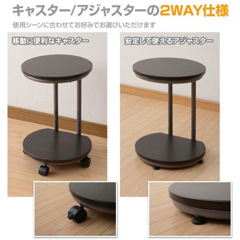 ソファ横やベッドサイドにちょい置きスペースを作るサイドテーブル。移動に便利なキャスターとしっかり置けるアジャスターの2WAY仕様。