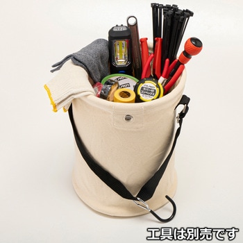 本職の職人さんが大きなカラビナとセットで使っているのを見て便利そうなので買って見たところ、思っていたより使い勝手がいいです。脚立で作業するときも手近なところに引っかけておけます。柔らかいのでノートPCも入ります。値段も安いので追加購入しました。お薦めです。