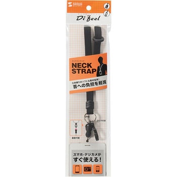 タブレット・カメラ ナイロン製ネックストラップ ブラック クッション付 取り外し可能な松葉紐パーツ 長さ調節可能 取り外し可能
