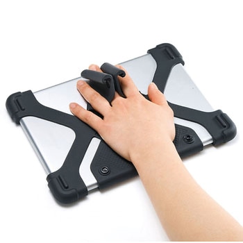 着脱簡単なシリコン製の耐衝撃ケースです。背面のボタンを留めることで、スタンドやハンドルとして使用できます。