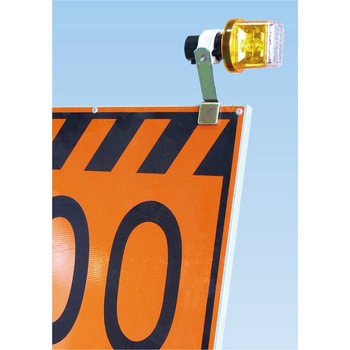 保安灯をガードレールまたは看板などに取り付けるための金具です