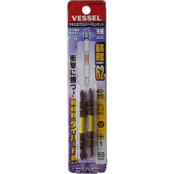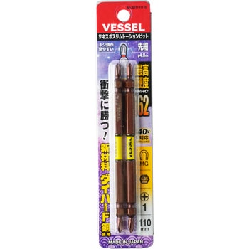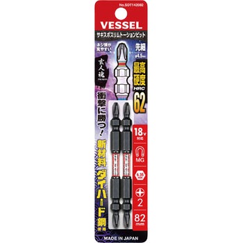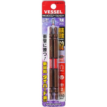 刃先が先細形状になっており、ねじ頭が断然見やすく作業効率が大幅に上がります。強さと粘りのある新素材により電動インパクトの高速・高トルク化に対応しました。ドリルネジやコーススレッドネジに適しています。ダブルトーション効果で、電動インパクトの衝撃を吸収し、耐久性が大幅にUPします。ネジ着座前の小さな衝撃を緩和するので締め込み作業が安定します。