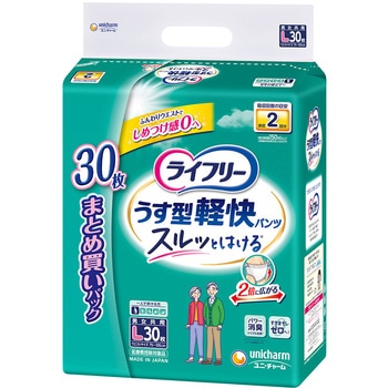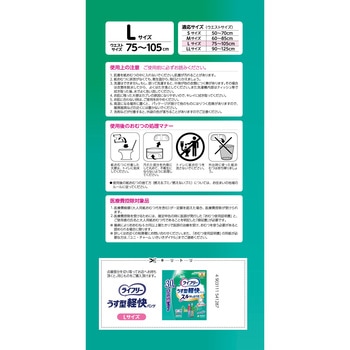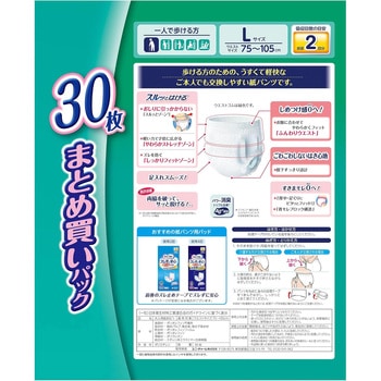 「スルッとはける」歩ける方のための、「うすくて軽快な」ご本人でも交換しやすい紙パンツです●特許技術 背中・足ぐりにふんわりフィットする「背中・足ぐりピタッとギャザー」がすきまモレを低減。●背モレブロック構造。尿・軟便をせきとめる空間が背モレを防ぐ。●特許技術 ギャザー間が広い「パッドすっぽりギャザー」でパッド交換が簡単。●特許技術 おしりに引っかからない「スルッとゾーン」がウエストゴムの巻き込みを防止。●「やわらかストレッチゾーン」が軽い力で2倍に広がる。●「しっかりフィットゾーン」がズレを防ぐ。●特許技術 「ふんわりウエスト」でしめつけ感0へ。●特許技術 「股下すっきり設計」でごわごわ感を低減。●特許技術 ご本人でも破りやすい「らくらくステッチ」※1。両脇を破って、サッと脱げる。●特許技術 「足入れスムーズ」によりすっきり形状で足の指がひっかからない。●スッキリうす型で、ゴワゴワしない。●全面通気シートで、ムレずにサラサラ。●下着のような肌触り。●パワー消臭トリプル効果※2。<以下注釈>※1係止部の剥離強度が製品横方向に比べて縦方向が弱い、サイドシール構造。※2アンモニア・ジメチルアミン・インドールについての消臭効果があります。おしっこ約2回分(約300cc)を吸収します。医療費控除対象品